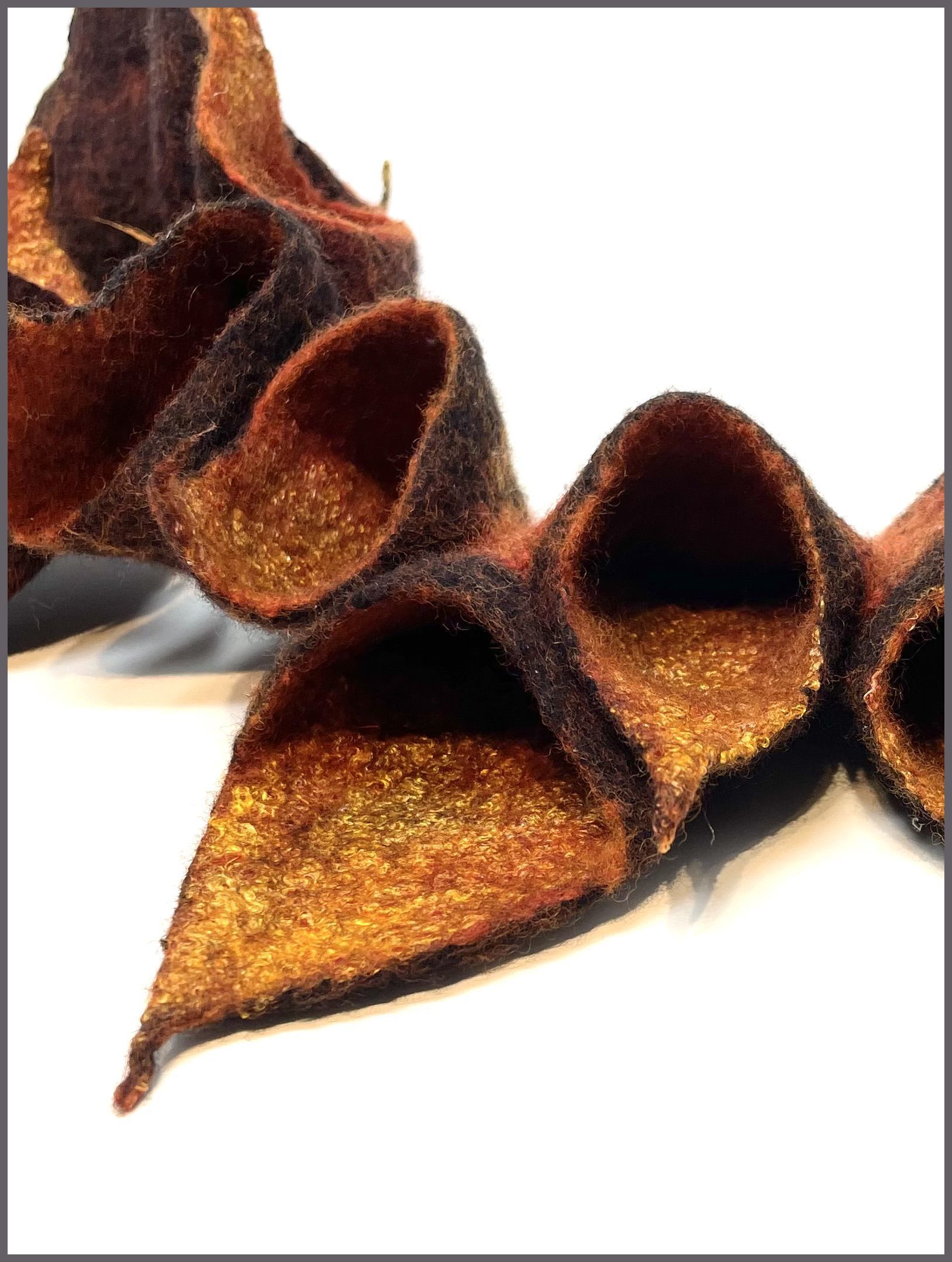 I am a wet felting and textile artist at heart with an eye for detail, embracing creativity, intertwined with a strong love for nature. I feel connected to nature and sustainability, which I am aspiring to bring across with my felt art. Sheep`s Wool is such an old, durable and versatile material transformed by me in a three-dimensional form. The art of felting connects you with mixed materials, colours, diverse textures and structures.